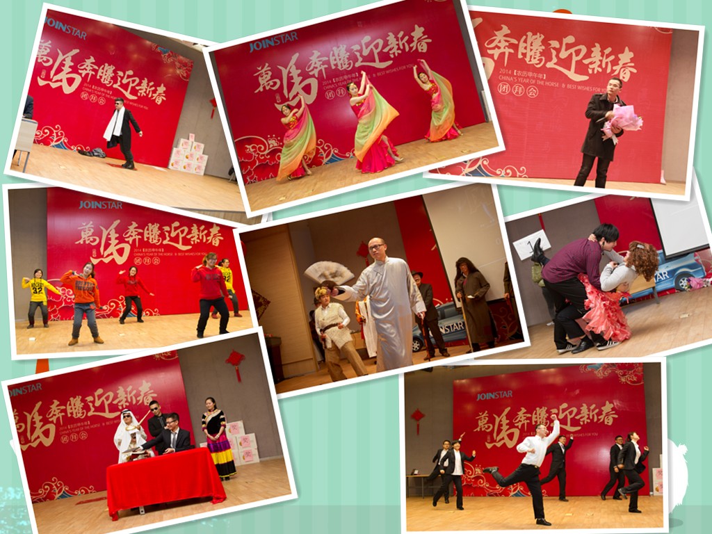 在严肃的总结会议结束之后,轻松活泼的文艺汇演正式形如。一年一度的团拜会是展现中翰人风采的最好舞台。舞蹈、歌曲、小品、时装秀等等各种形式的节目争相上演,各系统代表更是卯足了劲展示自我风采,就连平时严肃的高管们也上台秀了一把演技,把“武林”大会搬上了舞台。游戏抽奖穿插期间,更是让整台晚会高潮迭起。