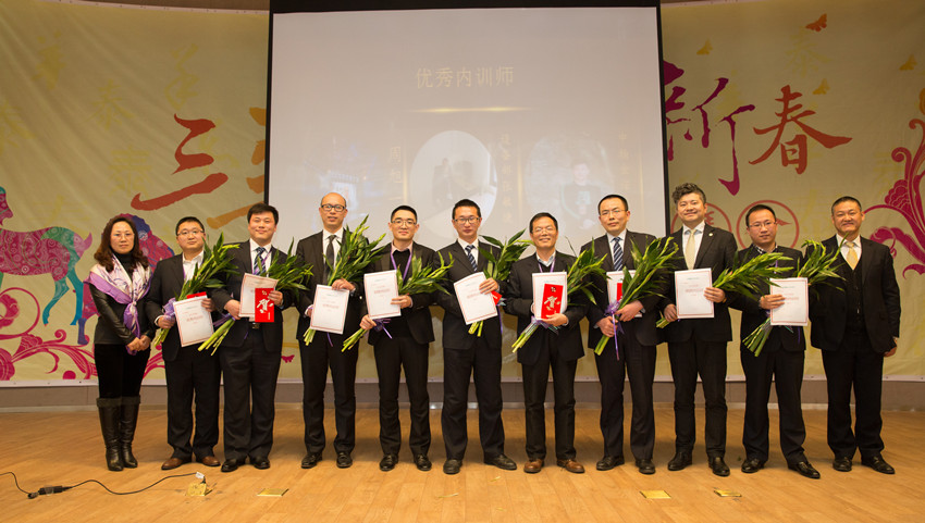 2月7日,中翰盛泰2014年度工作总结表彰大会暨2015新春团拜会在综合楼二楼多功能厅隆重开幕,会中对2014年度内训师做了表彰奖励。本次受表彰的内训师是公司内训师队伍成立以来的首批优秀内训师,是根据开发课程次数、授课次数、授课时长及学员评估得分综合情况严格评选出。陈晓东教授荣获金牌内训师、市场部总监董明和生化免疫研发部主任王森获得银牌内训师,营销副总傅黎明、质量部经理王忠及抗体研发中心主任李因来获得铜牌内训师,总经理周旭一、设备部经理张敏捷及中翰金诺行政主管武金斗获得优秀内训师称号。