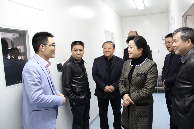 中翰盛泰董事长周旭一向施书记一行介绍了公司发展历程,在公司展厅周总向施彩华书记重点介绍了公司历时四年研发、具有自主知识产权的JS3000全自动免疫检测分析仪。施书记非常关心JS3000的上市时间和市场价值,听了周总的解答后,她表示仪器上市后,对医院和公众都是一个利好的消息。
