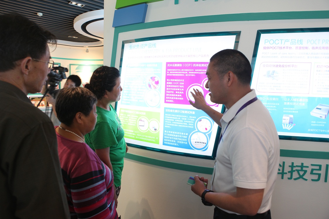 在园区综合楼206会议室各方代表进行会谈交流,杭州市药监局周铭处长对此次企业开放日活动致辞介绍,陈教授首先体外诊断行业进行科普,就在座社会代表所关心的老年痴呆、糖尿病、肾病等各项疾病与体外诊断行业的关系加以普及分析,随后王忠、周慧分别详细描述了体外诊断产品在研发生产及储运过程中质量控制的重要性,李因来介绍了体外诊断试剂原料、抗体研发相关内容,孙晋华博士向大家展示了生物信息技术在未来医疗诊断中将发挥的巨大作用,最后中翰盛泰行政副唐涛对中翰盛泰做了全面介绍。