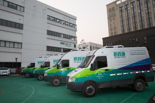 图为医智捷医疗器械冷链物流配送车队。