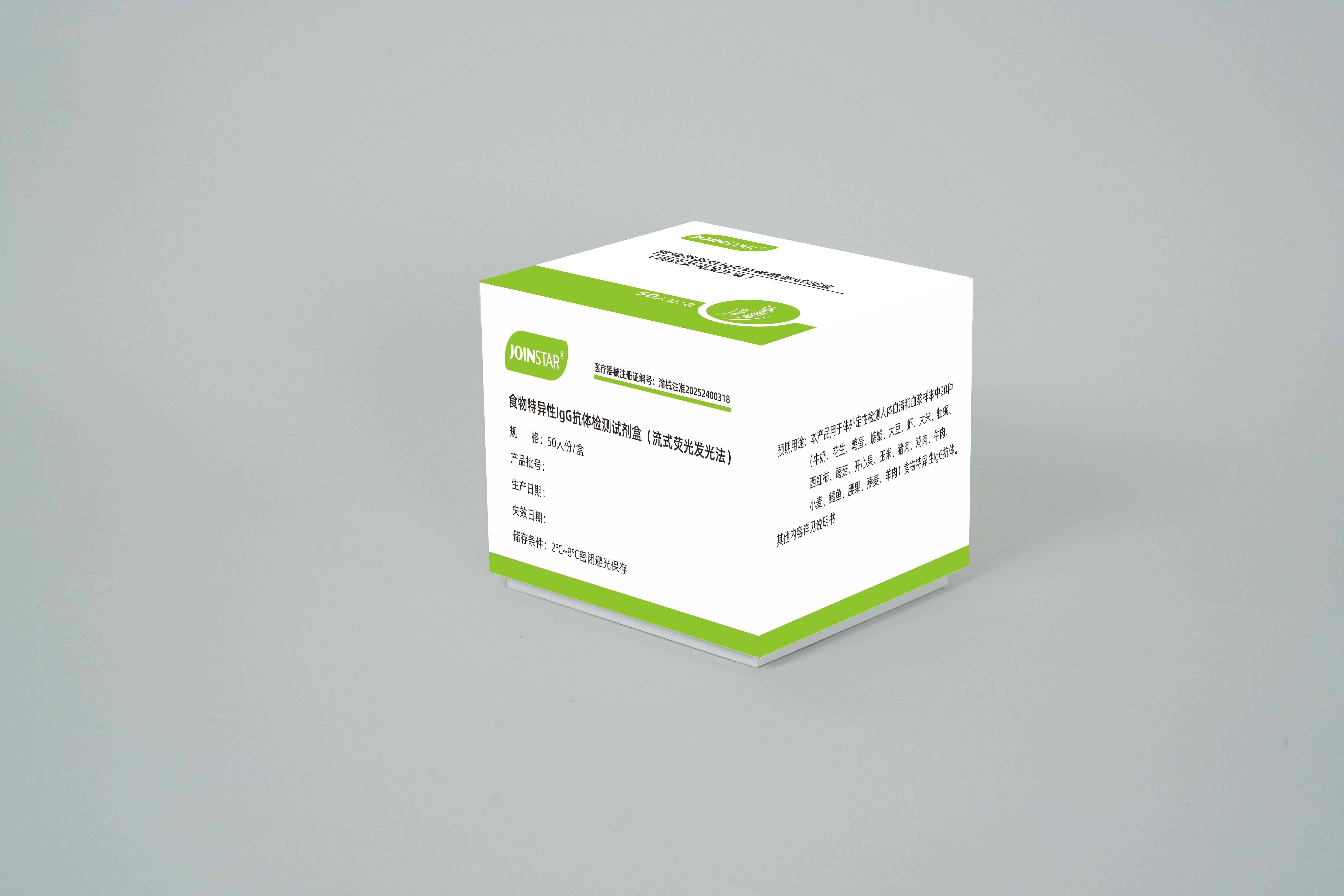 食物特异性IgG抗体:牛奶、花生、鸡蛋、螃蟹、大豆、虾、大米、牡蛎、西红柿、蘑菇、开心果、玉米、猪肉、鸡肉、牛肉、小麦、鳕鱼、腰果、燕麦、羊肉